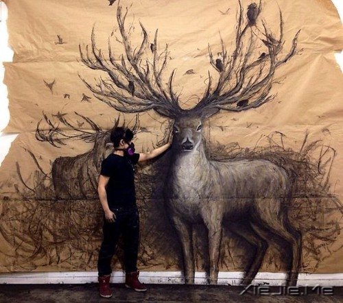 来自温哥华的艺术学生 Fiona Tang,用木炭,丙烯涂料和彩粉笔等原料创造了这些真实大小的3D动物绘图,非常惟妙惟肖,真是酷到没朋友。